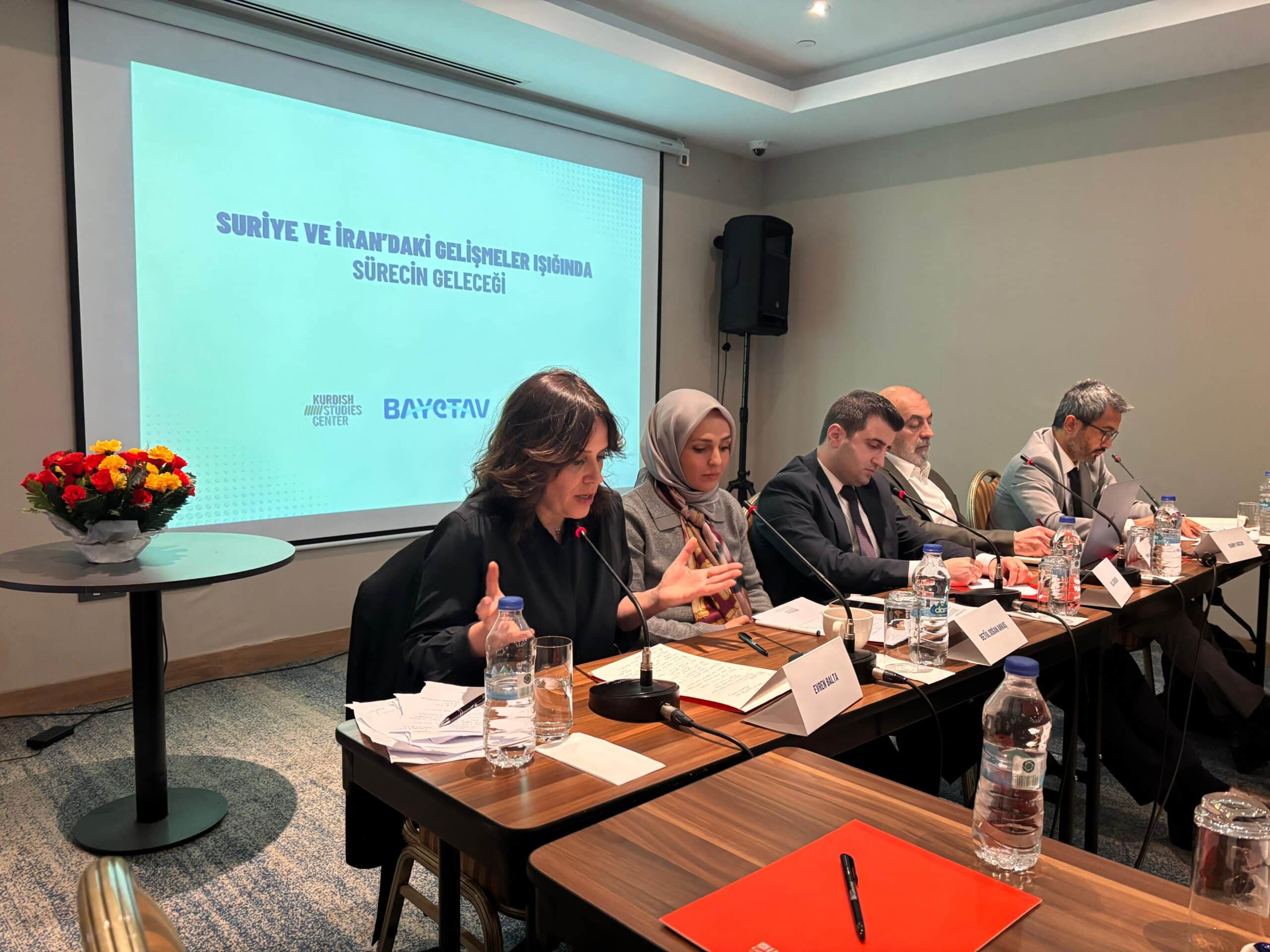 Bölge ve Körfez siyaseti üzerine çalışan Ankara Üniversitesi Siyasal Bilgiler Fakültesi öğretim üyesi Dr. Betül Doğan Akkaş, Suriye’deki gelişmeleri Suudi Arabistan ve Türkiye perspektiflerinden ele aldı. Özyeğin Üniversitesi öğretim üyesi ve uluslararası ilişkiler uzmanı Prof. Dr. Evren Balta, küresel gelişmeler ışığında Suriye’deki güç dengelerini ve Şam ile SDG arasındaki ilişkilerin seyrini değerlendirdi. İran Araştırmaları Merkezi (İRAM) kıdemli araştırmacısı Dr. Rahim Farzam ise ABD’nin İran’a yönelik müdahalesinin bölgesel dengeler üzerindeki etkilerini ele alarak, müdahalenin Türkiye’nin dış politikası ve devam eden sürecin gidişatı açısından ne tür sonuçlar doğurabileceğini tartıştı. Araştırmacı Mehmet Ali Çalışkan ise komisyon raporunu değerlendirerek sürecin kamuoyundaki algı ve beklentilerini ve bunların mevcut tartışmalara nasıl yansıdığını ele aldı.