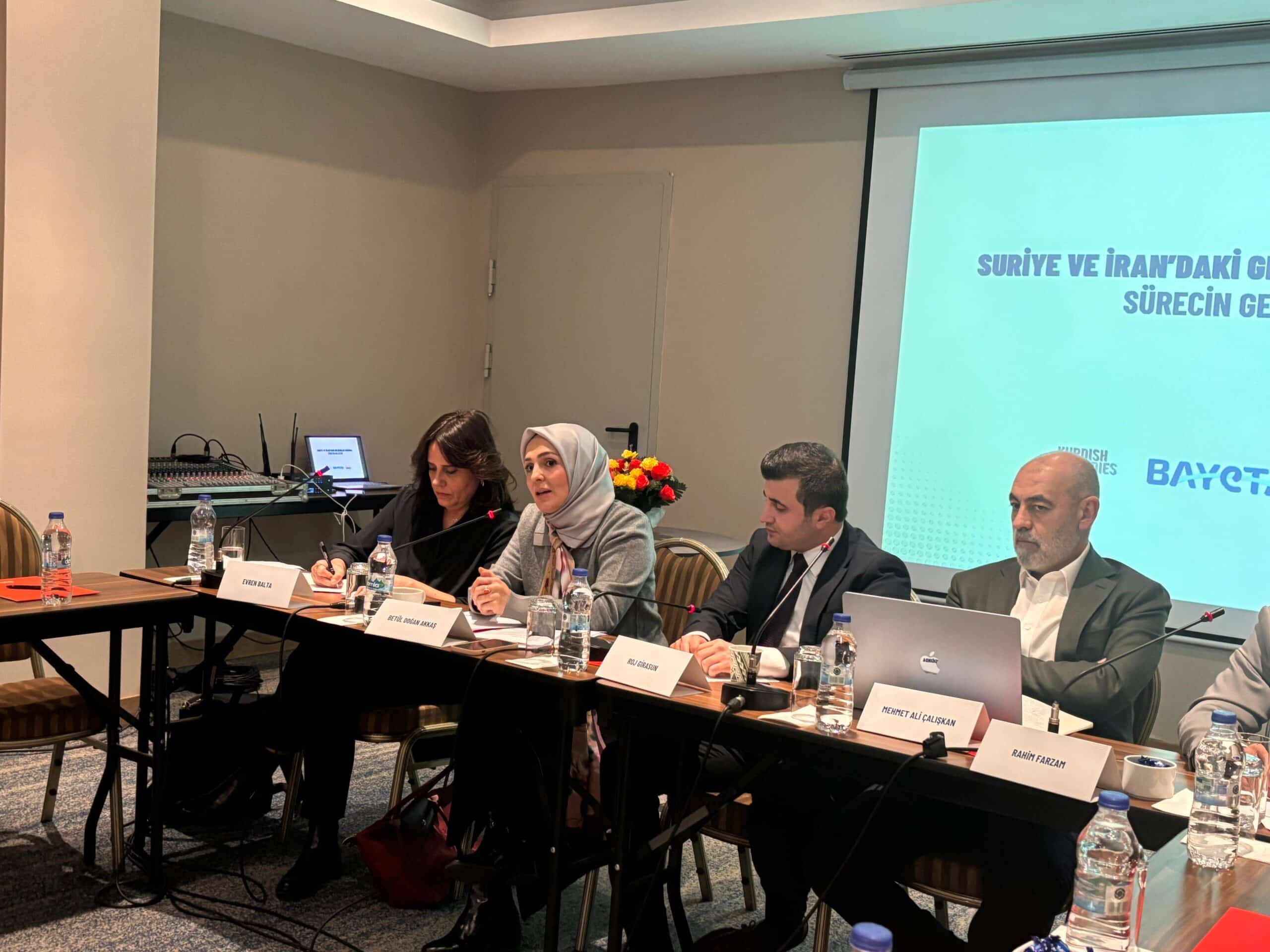 Kürt Çalışmaları Merkezi (KSC) olarak Rawest Araştırma ve BAYETAV işbirliğiyle Ankara’da “Suriye ve İran’daki Gelişmeler Işığında Sürecin Geleceği” başlıklı bir çalıştay düzenledik. İftar programıyla başlayan toplantıda; Halep’teki çatışmalarla başlayan ve 30 Ocak’ta varılan anlaşmayla yeni bir aşamaya giren gelişmelerin Şam-SDG ve Ankara-Kürtler ilişkilerini ve sürecin gidişatını nasıl etkileyebileceği tartışıldı. Ayrıca komisyon raporunun ardından beklenen adımlar ve ABD’nin İran’a yönelik müdahalesinin bölgesel güç dağılımına, Türkiye’ye ve devam eden sürece etkileri değerlendirildi.