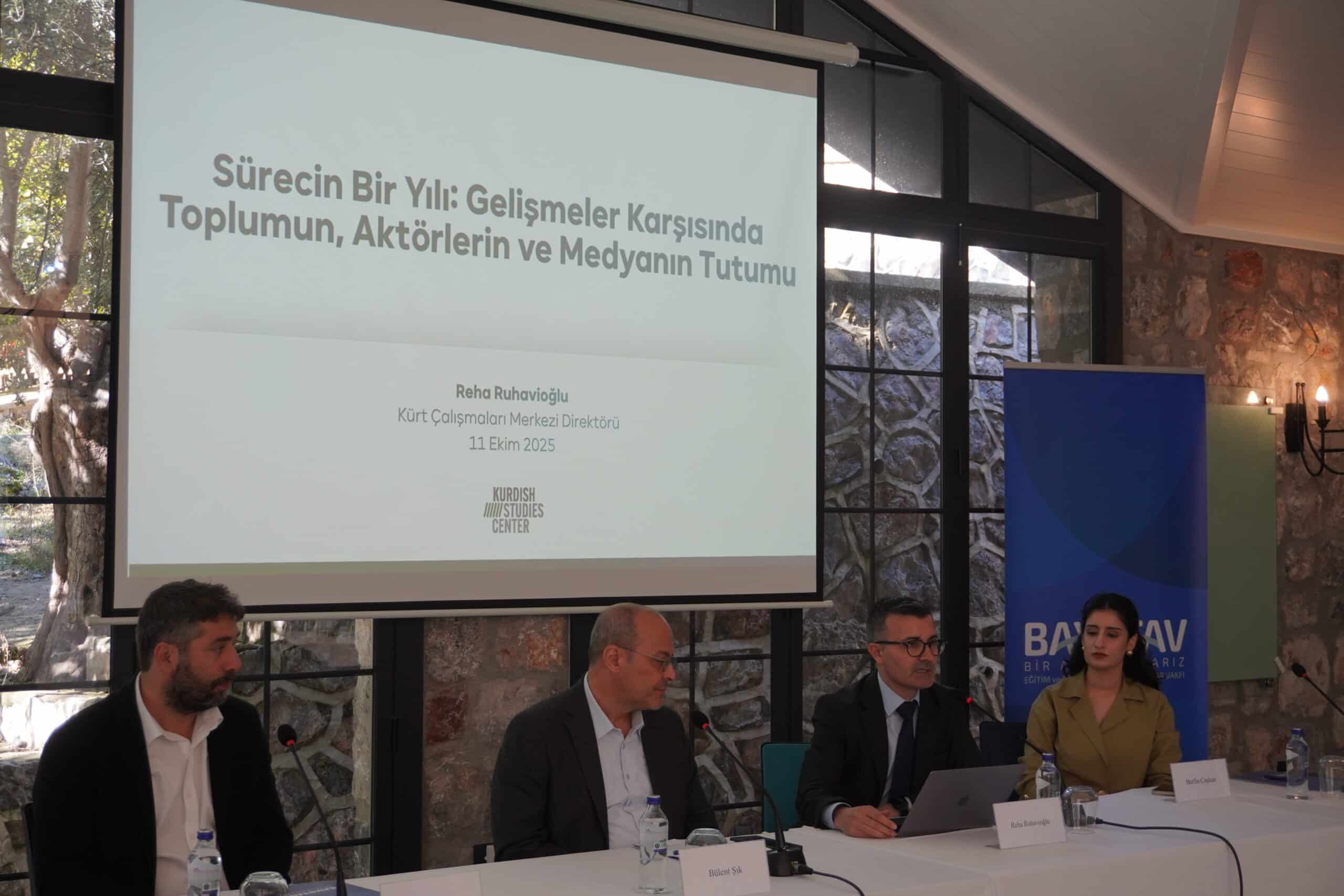 Program, BAYETAV Genel Sekreteri Bülent Şık’ın açılış konuşmasıyla başladı. Ardından Kürt Çalışmaları Merkezi Direktörü Reha Ruhavioğlu, “Sürecin Bir Yılı: Gelişmeler Karşısında Toplumun, Aktörlerin ve Medyanın Tutumu” başlıklı sunumuyla bir yıllık dönemin panoramasını çizdi.